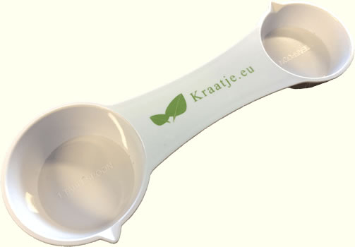 The powder scoop is a good, robust, simple and fast solution for dosing tea or any other powder. You can use the front and back. Get your powder scoop here and use it in the kitchen.